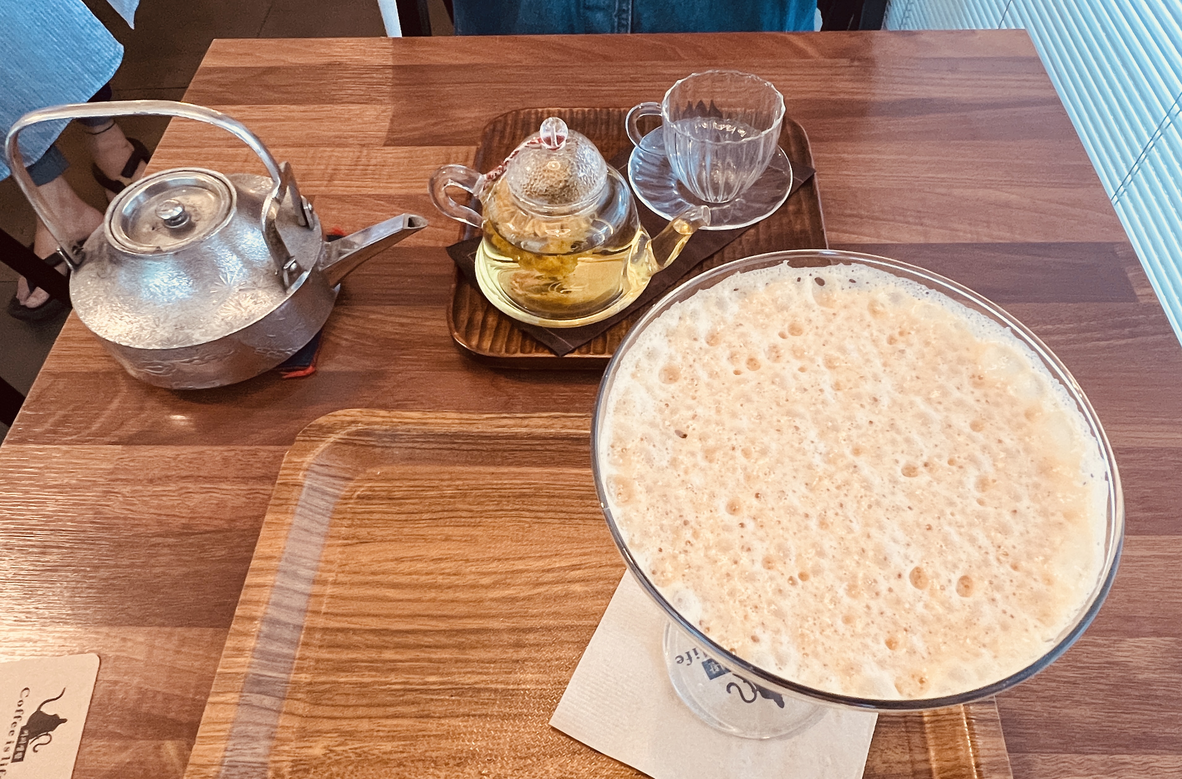 사케라면 일본식 술이 떠오르는데, 잔을 한 모금 마셔 보니 알코올 향은 거의 느껴지지 않고, 진한 에스프레소와 고운 거품, 그리고 팥알 같은 작은 얼음들이 전부였어요.