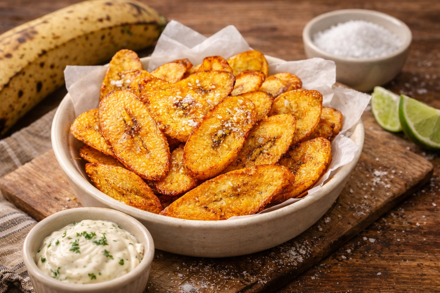 - 디저트로 먹을 땐 설탕과 시나몬을 살짝. (브라질식 바나나 튀김/칩 레시피에서 설탕+시나몬 조합이 흔해요.)